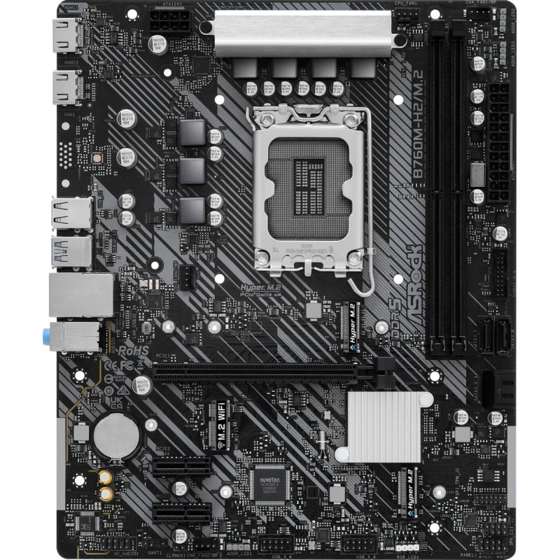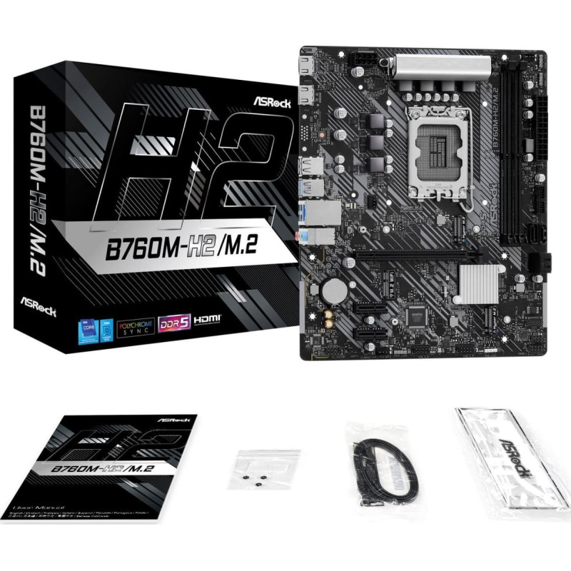 - Supports 14th, 13th & 12th Gen Intel® Core™ Processors (LGA1700) - 5+1+1 Power Phase - Supports DDR5 7200+ (OC) - 1 PCIe 4.0 x16, 2 PCIe 3.0 x1, 1 M.2 Key E for WiFi - Graphics Output Options: 2 HDMI - Realtek ALC897 7.1 CH HD Audio Codec - 4 SATA3, 2 Hyper M.2 (PCIe Gen4 x4) - 6 USB 3.2 Gen1 Type-A (4 Rear, 2 Front), - 6 USB 2.0 (2 Rear, 4 Front) - Dragon 2.5G LAN - Supports ASRock Auto Driver Installer Manufacturer Website: https://www.asrock.com/MB/Intel/B760M-H2M.2/index.asp | ||||||||||||||||||||||||||||||||||||||||||||||||||||||||||||||||||||||||