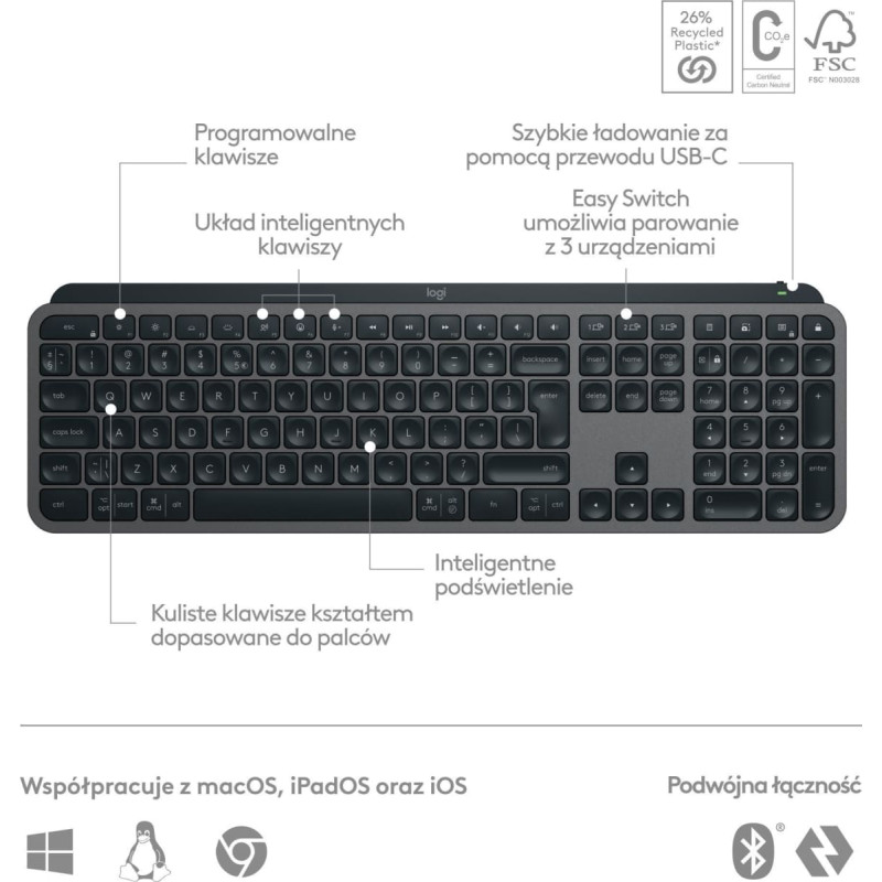 Logitech Mysz Logitech MX Anywhere 3S Graphite (910-006929) + MX Keys S Bezprzewodowa Graphite US (920-011587)