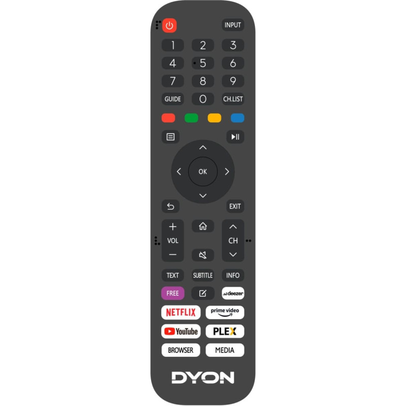 | The DYON SMART 32 VX combines comfort and modernity in one: The compact SmartTV has an 80 cm (32") LED panel with WXGA resolution (1,366 x 768 pixels) and can therefore effortlessly display HD content. It runs on the VIDAA operating system and is equipped with a Chromecast so that you can quickly and easily access content from the Internet or your own photos and videos. Integrated stereo speakers and a USB port for playing your own content round off the range of functions.Article no.: 1898170 Energy efficiency class (SDR) E (A - G) Energy consumption per 1000 hours (SDR) 26 kWh Power consumption in on state at standard dynamic range (SDR) 26 watts Power consumption in standby and off mode 0.4 watts Power consumption in networked standby mode 0.9 watts Screen diagonal 80 cm (32 inches) Screen resolution 1366 x 768 pixels Type LED TV Color: Black EAN Code 4260552542755 Manufacturer part number: D800214 Operating system VIDAA Image format 16:9 Channel search, Smart TV, Web Browser Tuner type 1x DVB-S2 tuner, 1x DVB-C (HD) tuner/ 1x DVB-T2 (HD) tuner Connections 1x antenna-in, 1x LNB-in, 3x HDMI-in, 1x headphone output, 2x USB-A-2.0, 1x RJ 45, 1x CI+, 1x optical-out Communication WLAN Speaker number 2 Wall mount VESA compatible (200 x 100 mm) Features Hotel mode, Media Player Dimensions Width: 71.6 cm x Height: 47.1 cm x Depth/Length: 19.1 cm Weight 3.6 kg | ||||||||