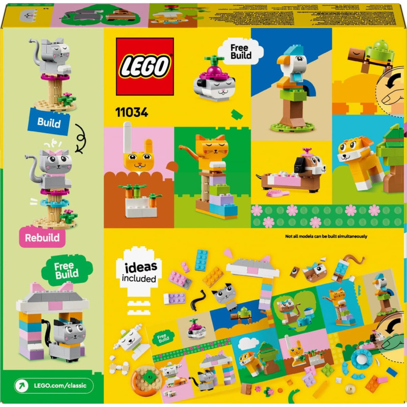 | LEGO Classic: These are building block sets with great LEGO elements such as wheels, windows, eyes or levers - and with the well-known building blocks in the classic shapes. These sets are the basis for lots of creative LEGO ideas: whether vehicles, buildings or animal figures - you can build just about anything with them. The sets can of course be freely combined and expanded with each other and come with suggestions for great projects. This set contains 450 parts that can be used to build a LEGO dog with a food bowl and bone, a cat on its scratching post, a hamster with an apple, a rabbit with a carrot and a bird on a perch. There are also simple instructions with another 10 building ideas. Item no.: 100011686 Type of construction toy EAN5702017582511 Manufacturer No. 11034 Classic Series Parts 450 pieces Recommended age 5 years and up Target group: Kindergarten children Material: Plastic Warning: Not suitable for children under 36 months! Warning: Danger of suffocation due to small parts! | ||||||||