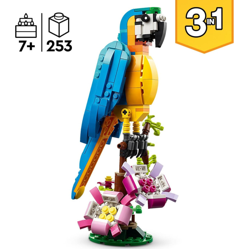 | The LEGO Creator 3-in-1 Exotic Parrot set provides animal lovers aged 7 and over with lots of building fun - and three times over. In addition to the parrot, which sits on a branch, can turn its body 360° and move its wings and tail, the 253 parts can be used to build a fish and a cheeky frog with movable legs.Art. no.: 1869291 Type of construction toy EAN Code 5702017415895 Manufacturer part number: 31136 Series Creator Parts 253 -pieces Recommended age 7 years and up Target group: school children Warning: Not suitable for children under 36 months! Warning: Danger of suffocation due to small parts! Further information The finished parrot is 22 cm high, 11 cm long and 12 cm wide. | ||||||||