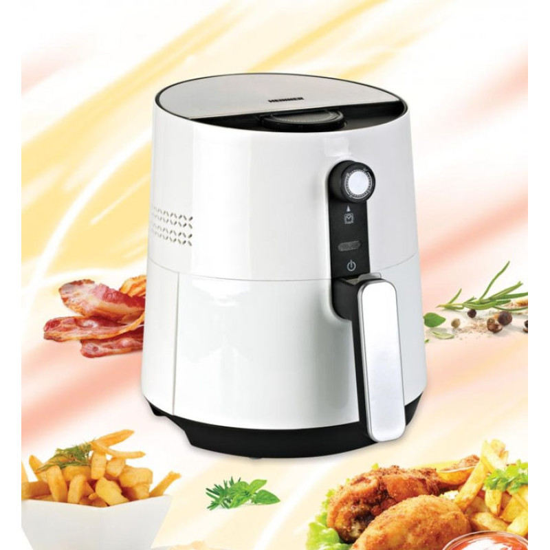 Heinner Hot Air Fryer HAF-1300WH, 1300W, total capacity: 3.6L, removable non-stick basket: 2.6L, outer pot with non-stick coating, adjustable thermostat: 0-200°C, timer: up to 60 min, cool-touch handle, overheating protection, white