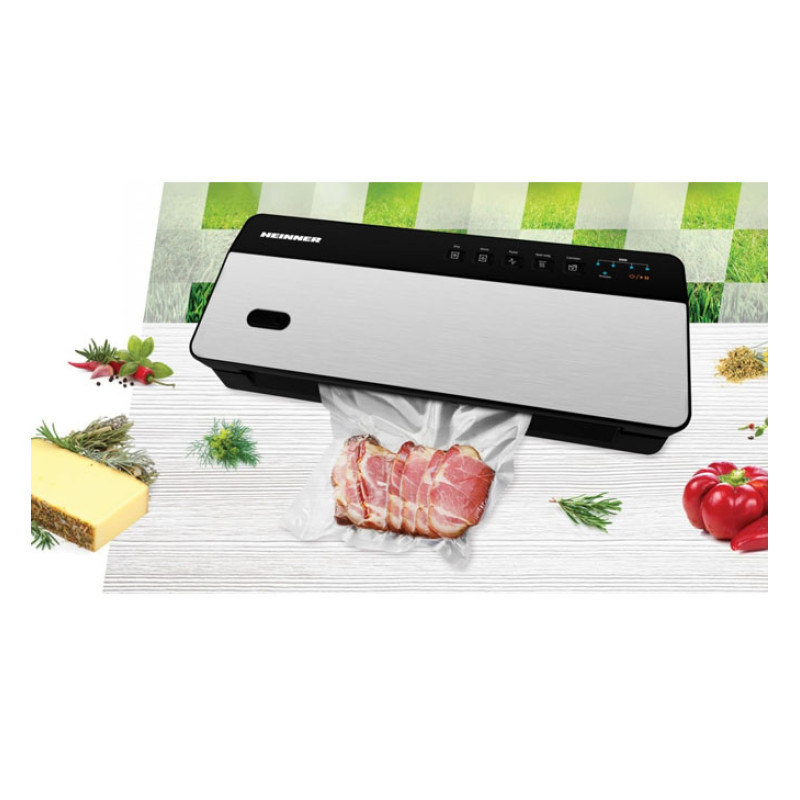 Cordless Vacuum Sealer Heinner HAV-CRD80SS, Rechargeable, Wet & Dry Vacuuming, Seal-Only Function, Lithium Battery 11.1V, 2000mAh, Vacuum Power: -0.6~-0.8 bar, Working Time: 60 min, Built-in Cutter, USB Charging, Charging Time: 3h, Roll Storage Compartment, Includes 1 Roll Bag (28x300 cm), 1 Hose for Canister Vacuuming, Power: 80W, Black.