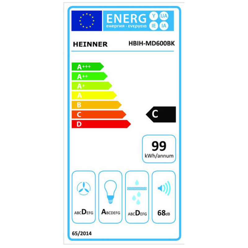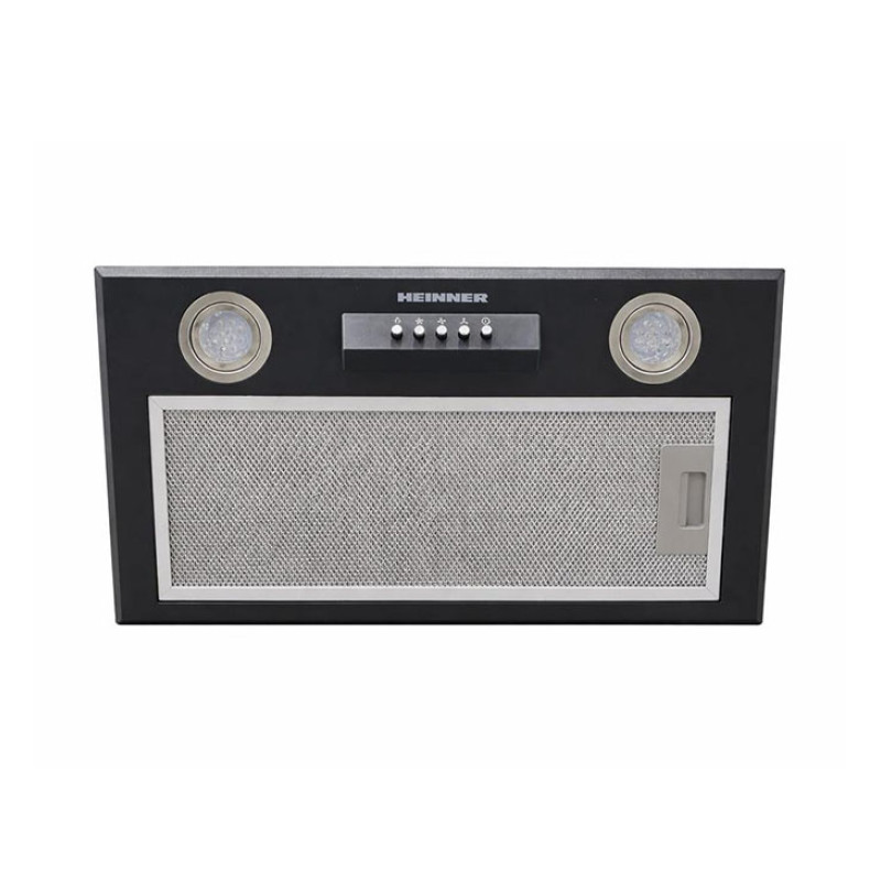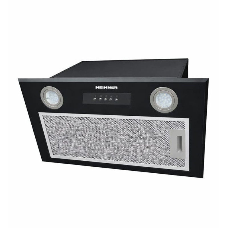 Built-In Hood Heinner HBIH-MD600BK, 60 cm, Maximum Absorption Power: 610 m³/h, 3 Speed Settings, Motor: 1 × 215W, LED Light: 2 × 1.5W, 1 Aluminium Filter, Exhaust Pipe Diameter: 150 mm, Dimensions (L×A×I): 52×28.4×29.9 cm, Black