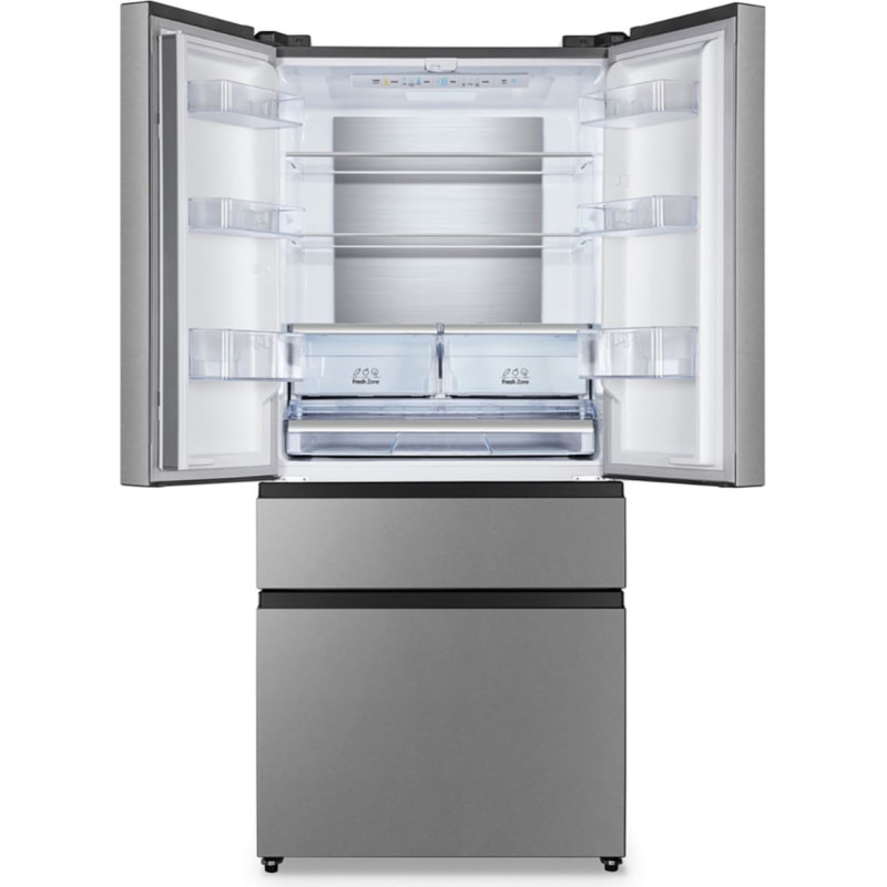 | Franču durvju ledusskapis Hisense RF540N4SBI2 parsteidz ar savu dasno kopejo 480 litru tilpumu un daudzajam funkcijam. 302 litru ledusskapja nodalijuma ir tris plati plaukti, kas izgatavoti no drošibas stikla, divas auglu/darzenu atvilktnes, no kuram viena ir Moisture Fresh Crisper ar mitruma kontroli, un seši durvju nodalijumi skaidrai svaigas partikas uzglabašanai. Saldetavas nodalijuma izmantojama ietilpiba ir 178 litri, un tas sastav no divam saldetavas atvilktnem, kuras var viegli atvert no arpuses. Unikalais My Fresh Choice nodalijums lauj lietotajiem individuali pielagot temperaturu no -18 °C lidz +5 °C un tadejadi brivi izveleties tas funkciju. No Frost tehnologija nodrošina intensivu auksta gaisa cirkulaciju un tadejadi noverš ledus veidošanos, padarot manualo atkausešanu par pagatni. MultiAirflow sistema nodrošina vienmerigu vesa gaisa sadali un nemainigu temperaturu visa ledusskapja iekšpuse, savukart SuperCool un SuperFreeze funkcijas padara siltakas partikas uzglabašanu ipaši efektivu. Ar elektroenergijas paterinu 310 kWh gada, RF540N4SBI2 ir klasificets E energoefektivitates klase. Preces nr.: 1911269 Energoefektivitates klase E (A–G) Gada energijas paterinš 310 kWh/gada Ledusskapja nodalijuma izmantojama ietilpiba: 302 litri Saldetavas lietderiga ietilpiba 178 litri Zvaigznišu markejums (saldetavas nodalijums) 4 zvaigžnu nodalijums Klimata klase SN,N,ST,T Gaisa trokšna emisija 40 dB(A) Gaisa skanas emisijas klase C Atsevišks dizains Franču durvju tips Krasa nerusejošais terauds EAN 6921727044723 Ražotaja Nr. 20001523 PureFlat serija Kopeja izmantojama ietilpiba 480 litri (no kuriem saldetavas nodalijums: 178 litri, ledusskapja nodalijums: 302 litri) Ledusskapja nodalijums augšpuse, saldetavas nodalijums apakša Dzesešanas zonas plaukti 3 gab., veids/materials: drošibas stikls Integrets rokturis Saldetavas zona Saldešanas jauda 7 kg/diena Durvju nodalijumi 6 gab., olu paliktnis Displejs/displejs LED displejs Funkcijas super saldešanas funkcija, super atdzist funkcija, brivdienu sledzis, durvju signalizacija LED apgaismojums, ledusskapja nodalijuma, saldetavas nodalijuma Apgaismojuma efektivitates klase G Atkausešanas funkcija saldetavas nodalijums: Automatisks; Ledusskapja dala: Automatiska Dzesešanas dzesešanas tehnologija No-Frost tehnologija Durvis/montažas pietura Franču durvis Funkcijas My Fresh Choice, metala dzesešana, Dual Tech dzesešana, invertora kompresors Izmeri Platums: 79,4 cm x Augstums: 181,7 cm x Dzilums/garums: 70,6 cm Svars 111 kg | ||||||||