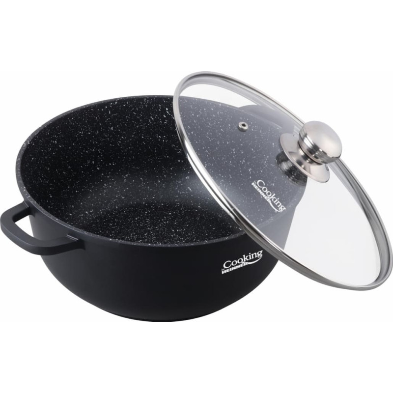 The DARK LINE large-capacity pot is designed for cooking very large portions, making it ideal for family gatherings, events, or batch cooking. The cast aluminum body ensures even heat distribution, while the black marble-effect ceramic interior coating prevents food from sticking and supports healthier cooking with less fat.