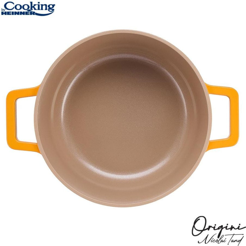 The NICOLAI TAND cast aluminum cookware line was created to finally give you a reliable helper in the kitchen, regardless of what you plan to prepare. The interior surface, coated with grey non-stick ceramic, provides increased resistance to sticking, makes cleaning easier, and allows cooking without fats, offering healthy and tasty options. The cookware efficiently retains heat, keeping food warm and delicious even after cooking, significantly reducing both cooking time and energy consumption. The orange exterior paint is resistant to high temperatures. At the same time, the cookware features a base suitable for all types of hobs, including INDUCTION. High-performance, durable, and functional, this line is essential for any kitchen. Any product from this line (or even the entire line) can be a suitable gift for any occasion, especially as a housewarming gift.