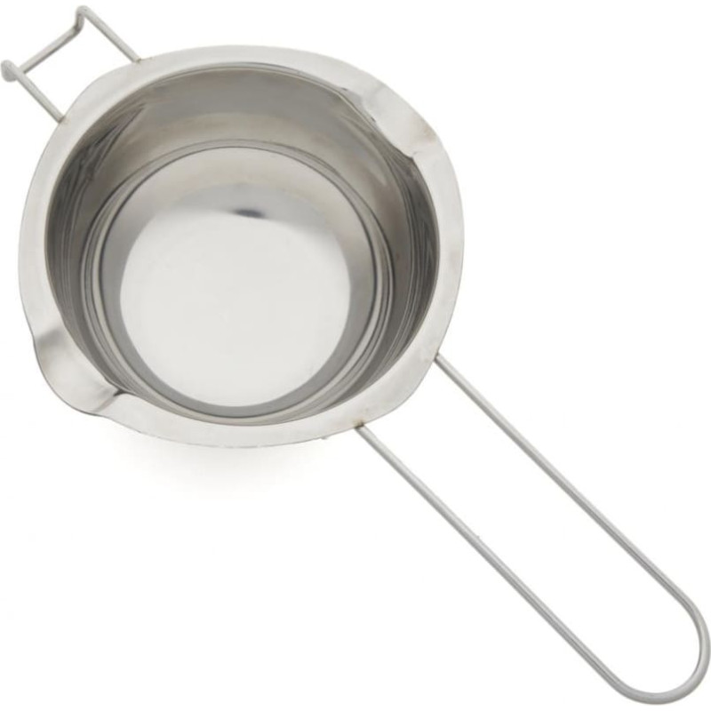 This stainless steel bowl is designed for gently melting chocolate using a bain-marie method. Its compact shape and integrated handle provide safe handling and precise pouring.