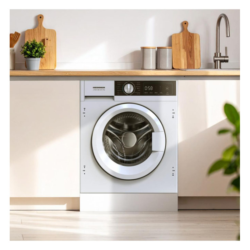 Built-In Washing Machine Heinner HWM-BI914IVA+++, 9kg Capacity, 1400RPM Spin Speed, Energy Class A, Inverter Motor, 15 Programs, Digital Display, 15-Min Quick Program, 45-Min Short Program, Baby Care Program, Drum Sanitization Program, Extra Rinse, Pre-Wash, Delayed Start Function, Temperature Selector, Spin Speed Selector, Child Lock, Dimensions (W×H×D): 59.5×56×82.5 cm, White