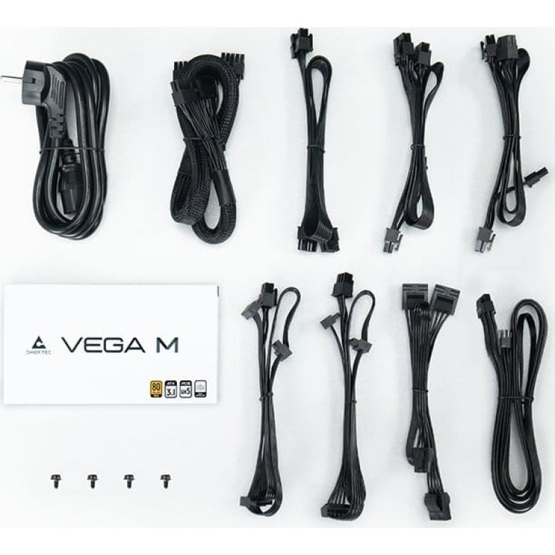 | The CHIEFTEC Vega M Series power supply is built to Intel’s ATX 12V 3.1 standard and supports PCIe GEN5 with 80PLUS Gold certified efficiency. It prioritizes a competitive price-to-performance ratio up to 850W while maintaining the trusted Chieftec quality. The Vega M Series features LLC Half-Bridge converter with DC-to-DC technology to provide enhanced power efficiency and stability. The full-modular design with extra- long black cables make it suitable for mainstream gamers to build their system, even in larger PC cases. Additionally, its 135mm fluid dynamic bearing (FDB) silent fan optimizes the balance between cooling performance and noise levels. The Vega Series is your trusted reliable choice for all computing needs incorporating all necessary modern protection and safety features. Manufacturer Website: https://www.chieftec.eu/products-detail/626/VEGA_M | ||||||||||||||||||||||||||||||