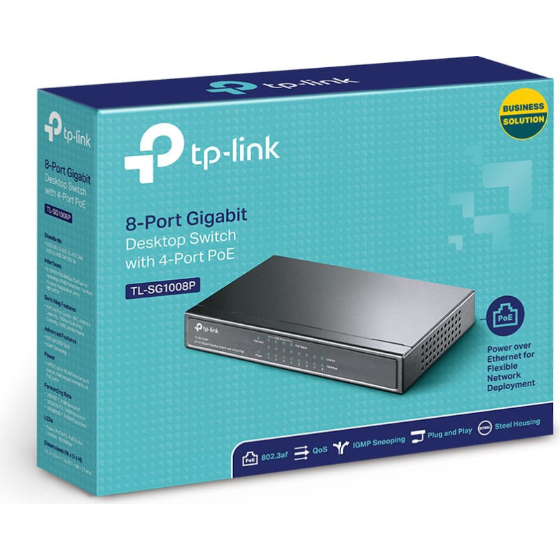| PoE Switches for Your Ultra Convenience 8-Port Gigabit Desktop Switch with 4-Port PoE Power over Ethernet 4 of the 5 Auto-Negotiation RJ45 ports (Port 1 to Port 4) of the switch support Power over Ethernet (PoE) function. These PoE ports can automatically detect and supply power with those IEEE 802.3af compliant Powered Devices (PDs). Intelligent Power Management When total power consumption excels 55W, the intelligent power management will cut the lower priority port power off to ensure the high priority port’s power supply and protect the device from power overload operation. Sturdy Metal Casing Sturdy, compact metal casing and shielded RJ45 ports, with desktop, to meet your needs in any environment. Besides, fanless design ensures quiet operation. | ||||||||||||||||||||||||||||||||||||||||||||||||||||||||||||||||||||||||||||||||||||||||||||||||||||||||||||||||||