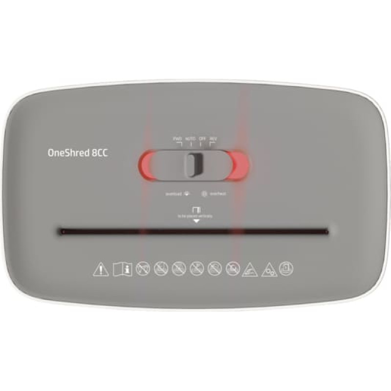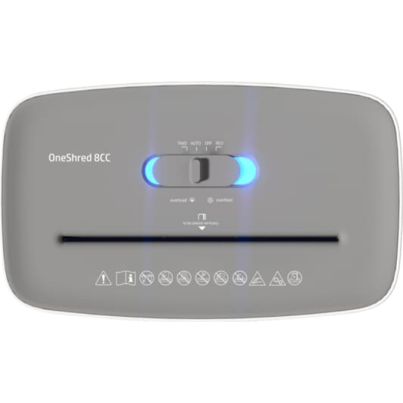 | The handy document shredder HP OneShred 8CC respectivley OneShred 8CC Black in modern design is a quintessential feature of any household and fits next to every desk. Thanks to the high security level P-4, the DSGVO-compliant shredding of sensitive data such as salary slips and tax returns is guaranteed. Up to eight DIN A4 sheets can be shredded at the same time in particle cut via the intuitive operation. Even paper clips, staples and credit cards are no problem for this reliable shredder. The shredder has an automatic reverse function in the event of a paper jam, as well as an overheating and overload indicator. Thanks to the viewing window, you are always alerted when the box needs to be emptied, even without a technical fill level indicator for the waste bin. | ||||||||||||||||||||||||||||||||||||||||||||||||||||||||||||||