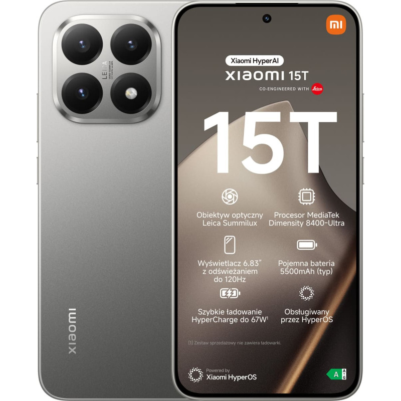Xiaomi 15T - 6.83 - 256GB, Mobile Phone grey, HyperOS, 12GB