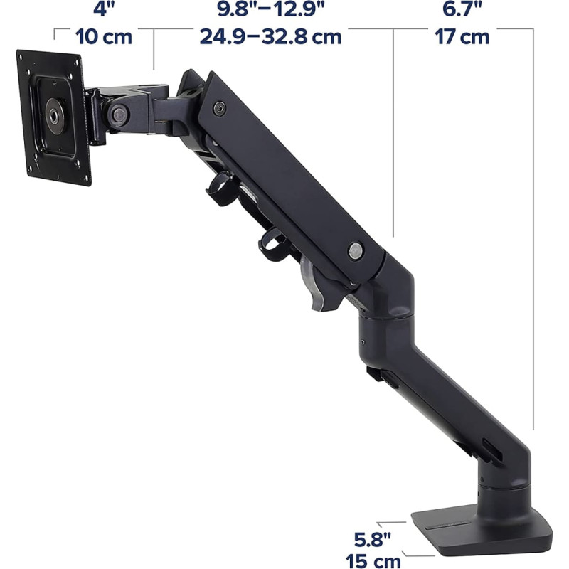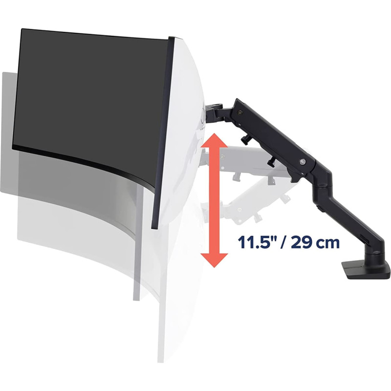| HX Monitor Arm with HD joint, monitor mount Ergotron's HX Monitor Arm with HD Articulation provides an immersive viewing experience and reclaims the desk. The monitor arm is suitable for heavy displays and gives the user the freedom to position the monitor in an optimal position. Type: Monitor Mount Color: Black EAN: 0698833085808 Manufacturer number: 45-647-224 To hold/attach: from | monitors To hold/attach: on / on | tables Suitable for: monitors Type of fastening: screw fastening, clamping device VESA standards: 75x75mm, 100x100mm Ergonomics: angle of inclination | From +15 ° to -5 ° Ergonomics: Tiltable | Yes Ergonomics: Rotatable | ± 360° Ergonomics: Swiveling | ±180° Ergonomics: Height adjustable | Up to 292mm Load capacity: 19.1 kg (1 x 19.1 kg) Number of supported devices: 1 Feature: ConstantForce Technology | ||||||||