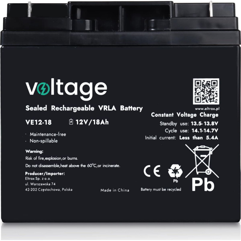 Voltage Akumulator AGM Voltage 12V 18Ah VE12-18