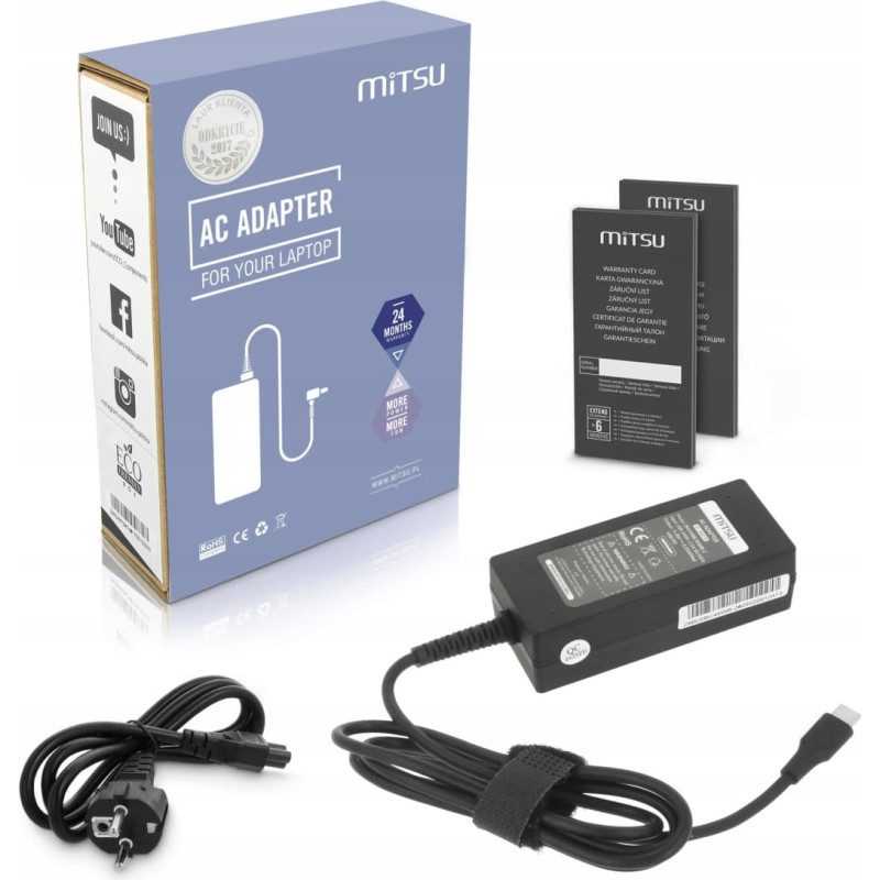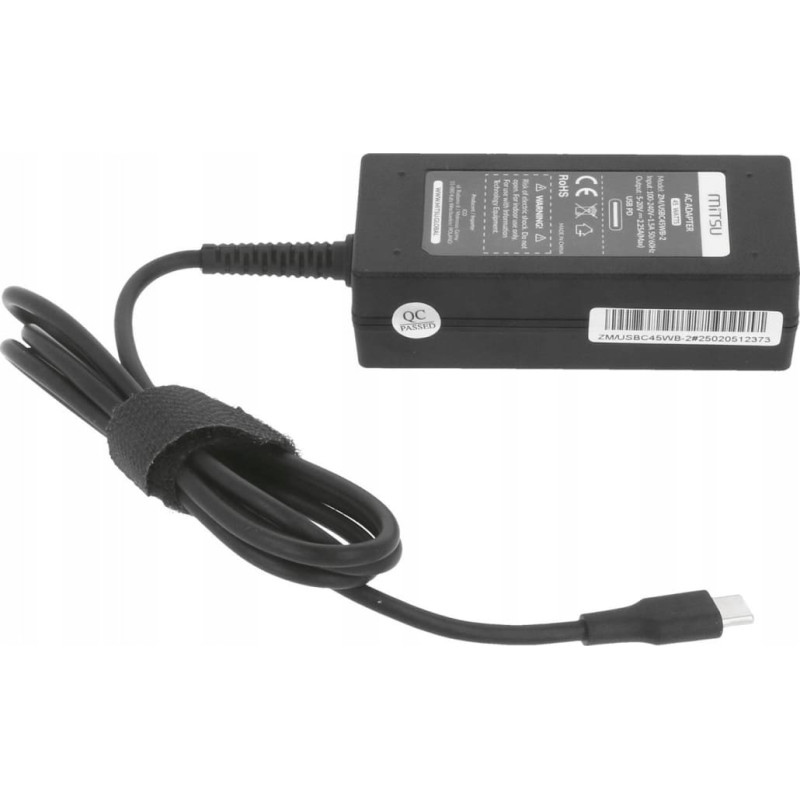 Mitsu Zasilacz sieciowy Mitsu 45W USB-C, USBC, 5-20V, 2-3A (black) do notebooka