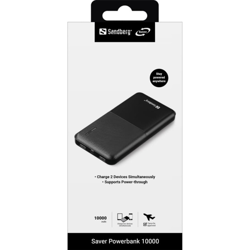 | Sandberg Saver Powerbank 10000 keeps your devices running with fast charging via both USB-C and USB-A. Its compact size makes it easy to carry anywhere, and it has enough capacity for typically two full charges of your smartphone. Perfect for travel, everyday use, and everything in between. Take the power with you and don't worry about empty batteries. | ||||||||||||||||||||||||||||||||||||||||||||||