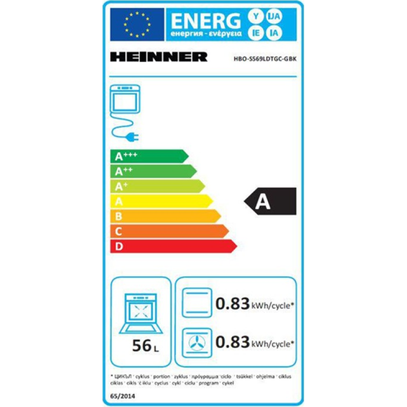 Built in oven Heinner HBO-S569LDTGC-GBK, Multifunctional oven, Capacity 56L, 9 functions, Energy efficiency class A, Digital timer, Display touch, Grill, Fan function, Defrost function, Oven light, Triple glass oven door with inner removable glass, Oven tray and grid, Dimensions (WxDxH): 59.5x56.5x59.5 cm, Color: Black glass.