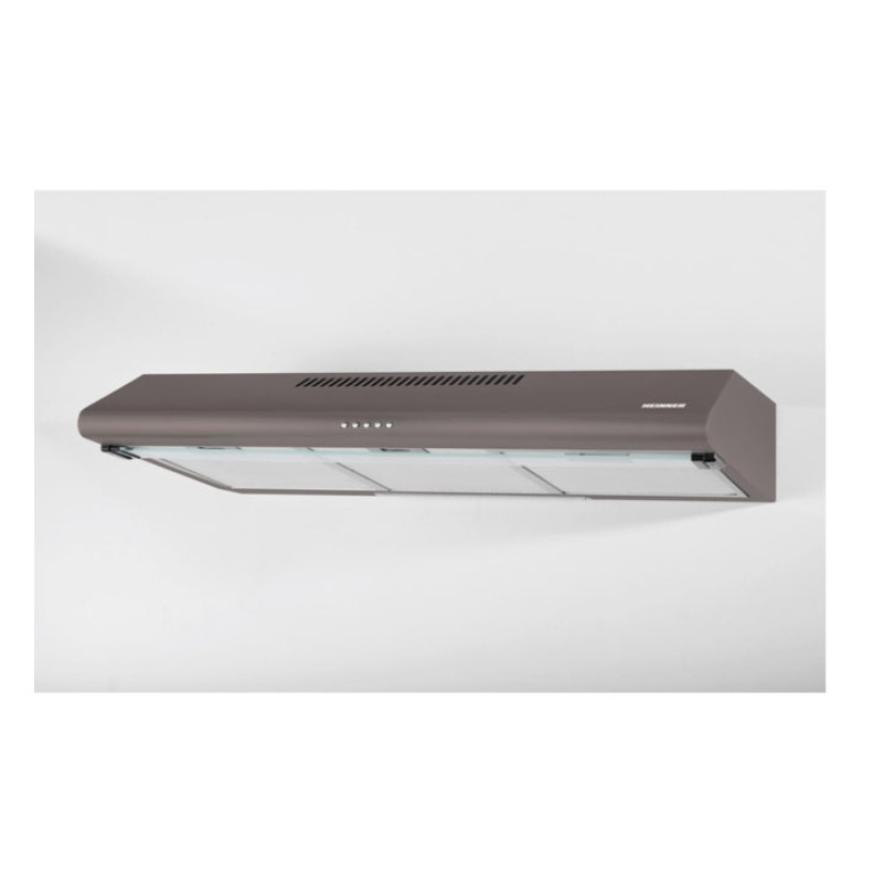 Traditional cooker hood Heinner HCH-490-BRW, 90cm, Max suction power: 304.5 m3/h, 3 power levels, Motor: 2 x 60W, LED light: 2 x 2W, 3 aluminum filters, Glass front panel, Push buttons, Air outlet diameter: 120 mm, Dimensions ( WxDxH): 90x50x15 cm, Color: Brown