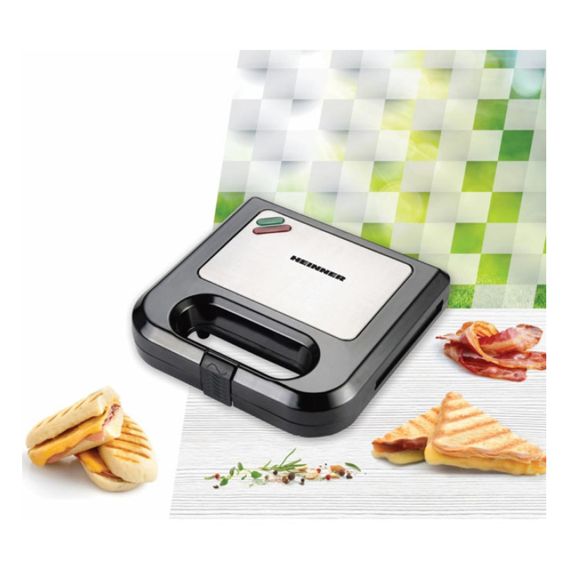 Sandwich maker HEINNER Magnet 750 SM-K750BKS, 700W, 2 sandwiches capacity, Non-stick grill plates, "Ready to use" indicator light, Power indicator light, Colour: black/stainless steel.
