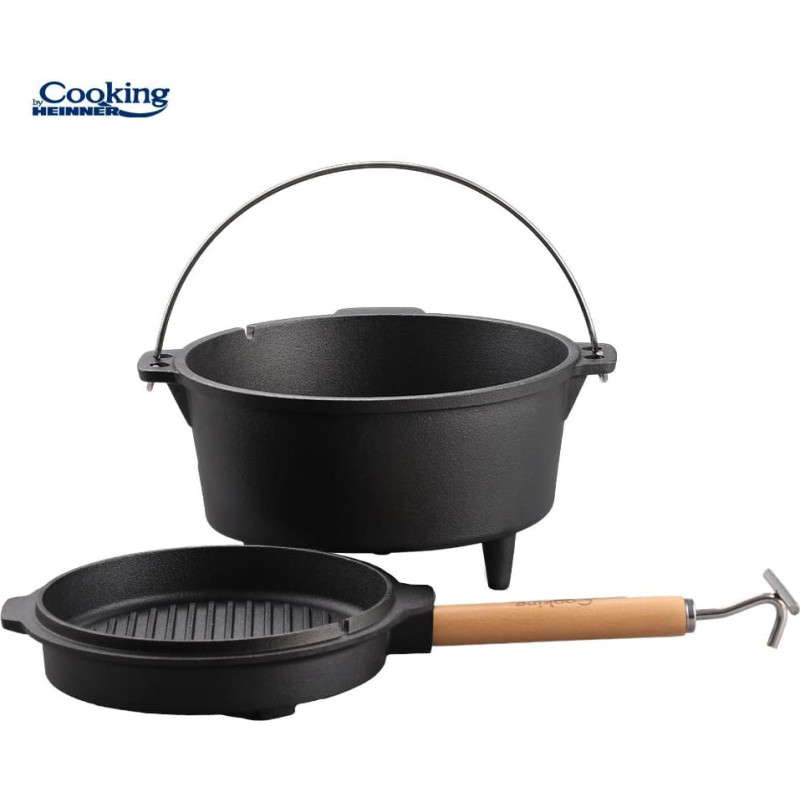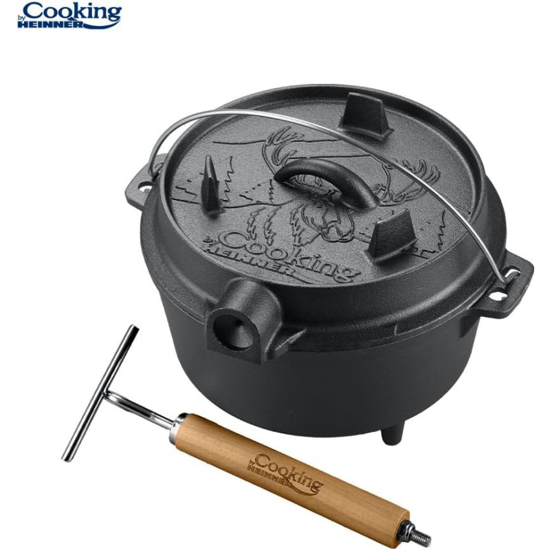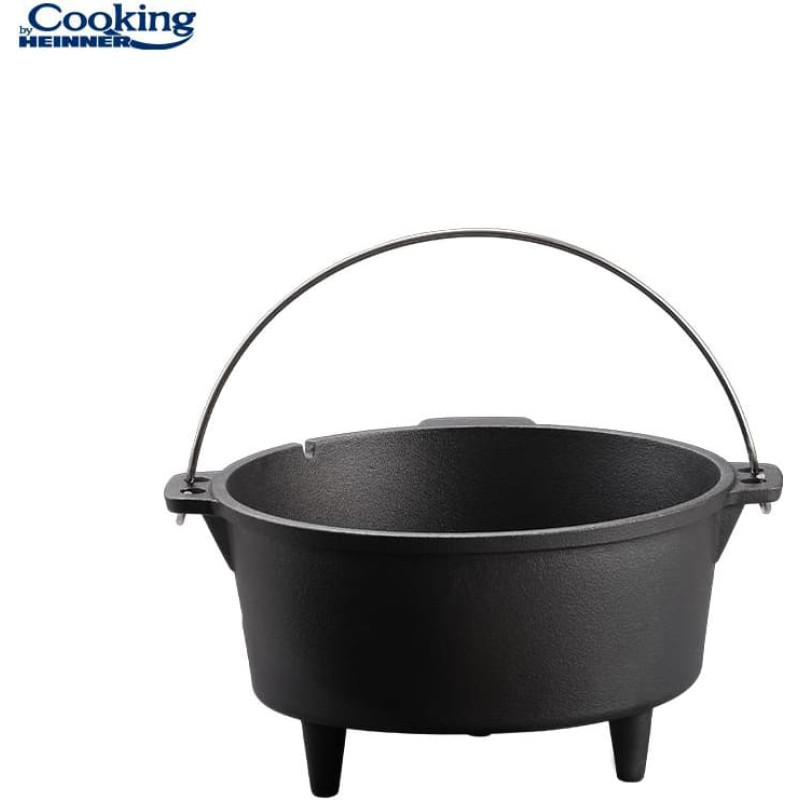 Heinner NATURE cast iron cauldron with lid, diameter 25 cm and 3.7 L capacity, is ideal for traditional cooking over open fire or stove. Made of pure cast iron with a wooden handle for durability and even heat distribution.