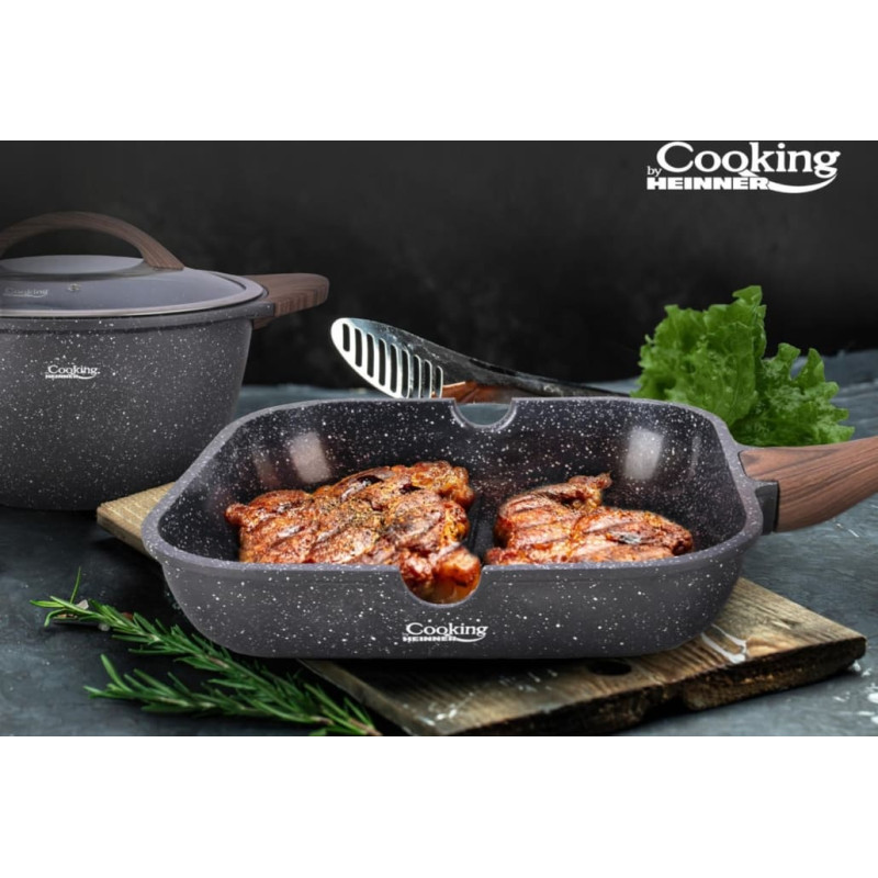 | Set contents: | Frying pan 28 x 5.5 cm, grill pan 24 x 24 x 5 cm, saucepan with glass lid 20 x 9 cm, casserole with glass lid 28 x 14 cm |