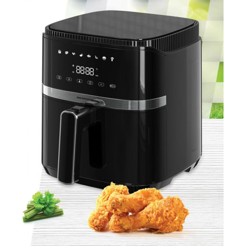 Air fryer Heinner VarietyFry HAF-B5BK1500, Power: 1500 W, Capacity: 5 L, Digital display with touch control, Timer: 60 min, Temperature: 80–200°C, 8 preset programs, Detachable basket, Automatic shut-off, Anti-slip feet, Colour: Black.