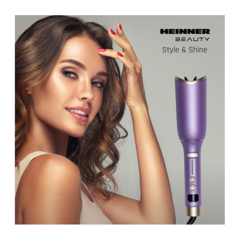 Heinner HTC-YD230PP automatic curling tong with digital display ensures effortless styling and long-lasting curls. Ceramic coating and precise temperature control protect the hair, while adjustable curling direction and timing offer flexible styling results.
