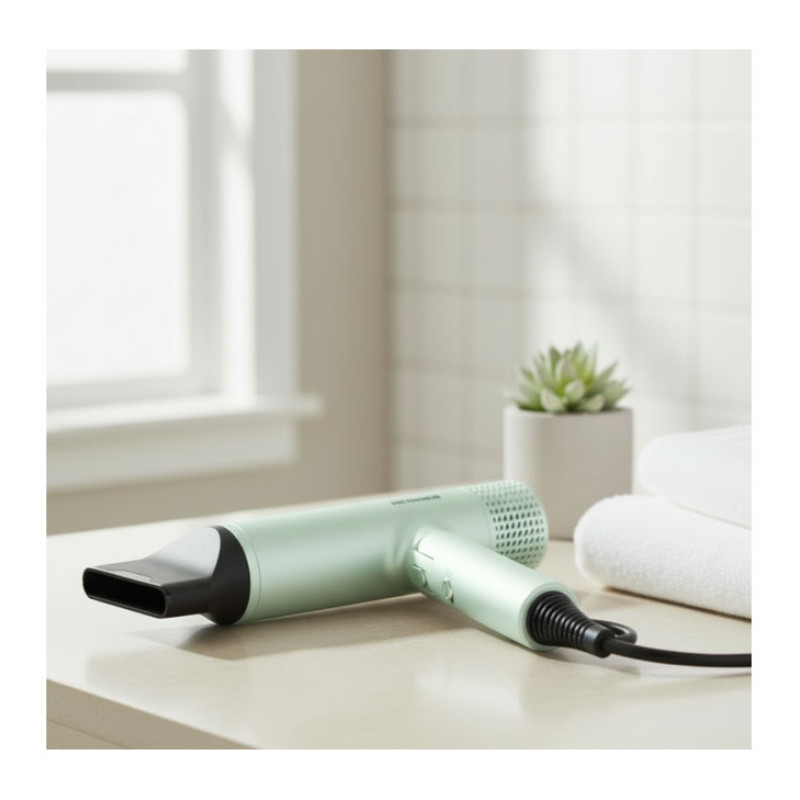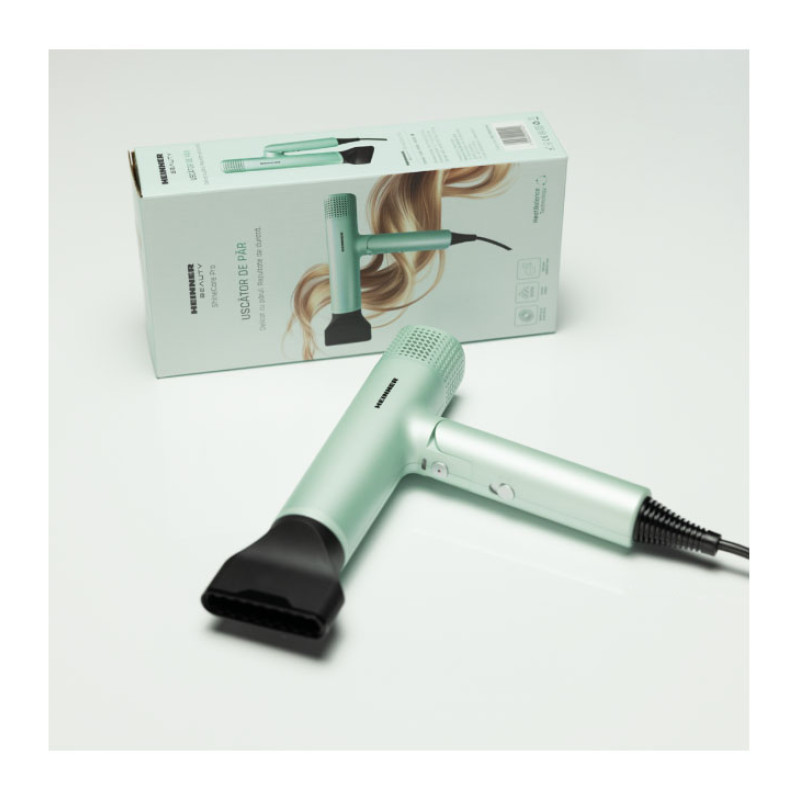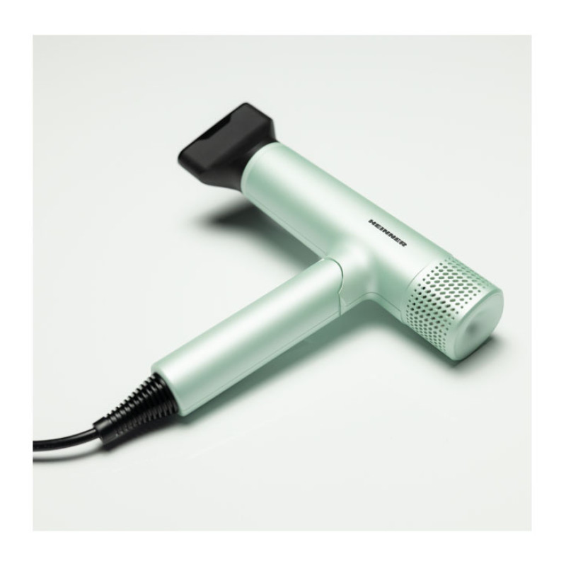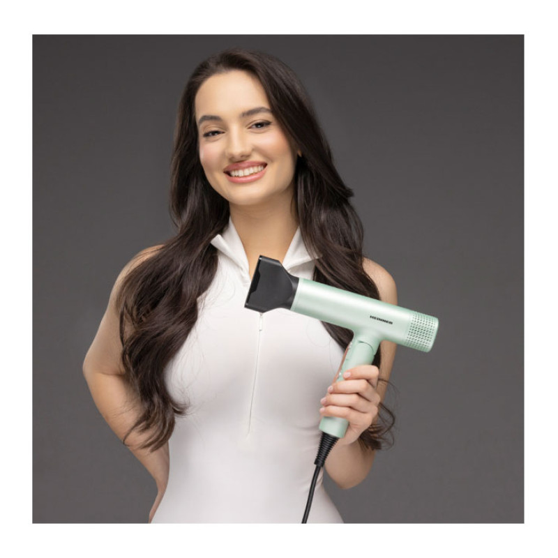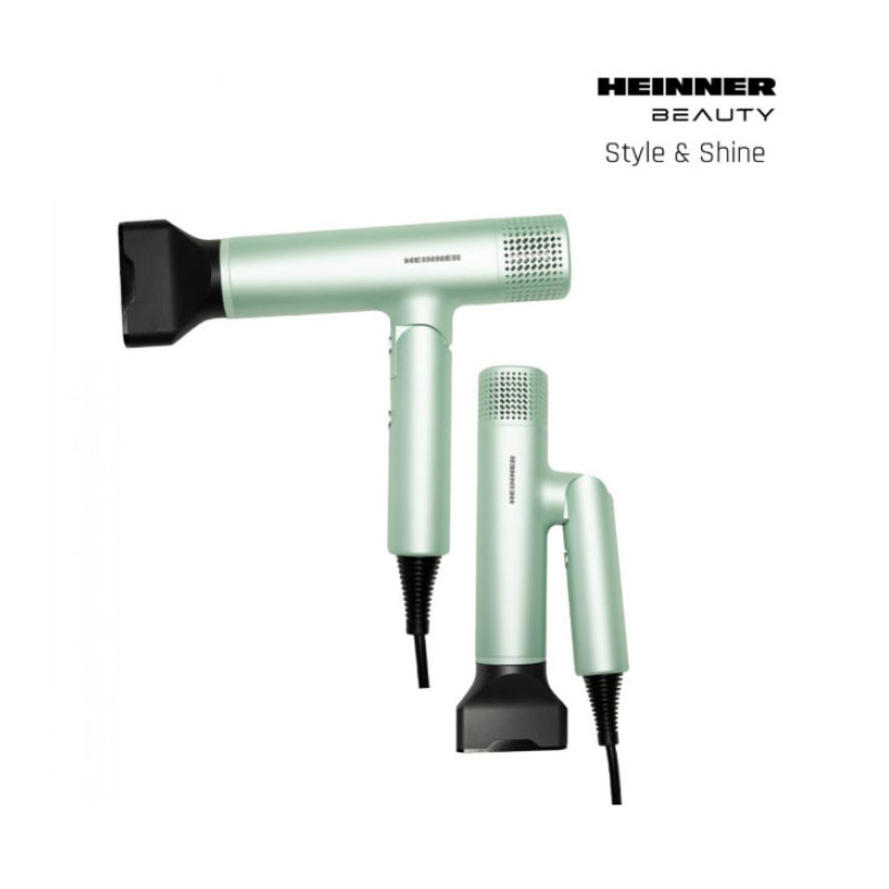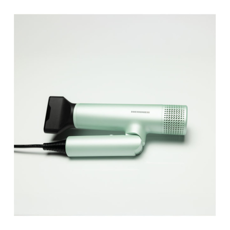Heinner HHD-Y16BLDC-GR hair dryer with a 1600 W BLDC motor delivers fast drying and reliable styling. Negative ion technology helps reduce frizz, while the foldable handle ensures easy storage and travel convenience.