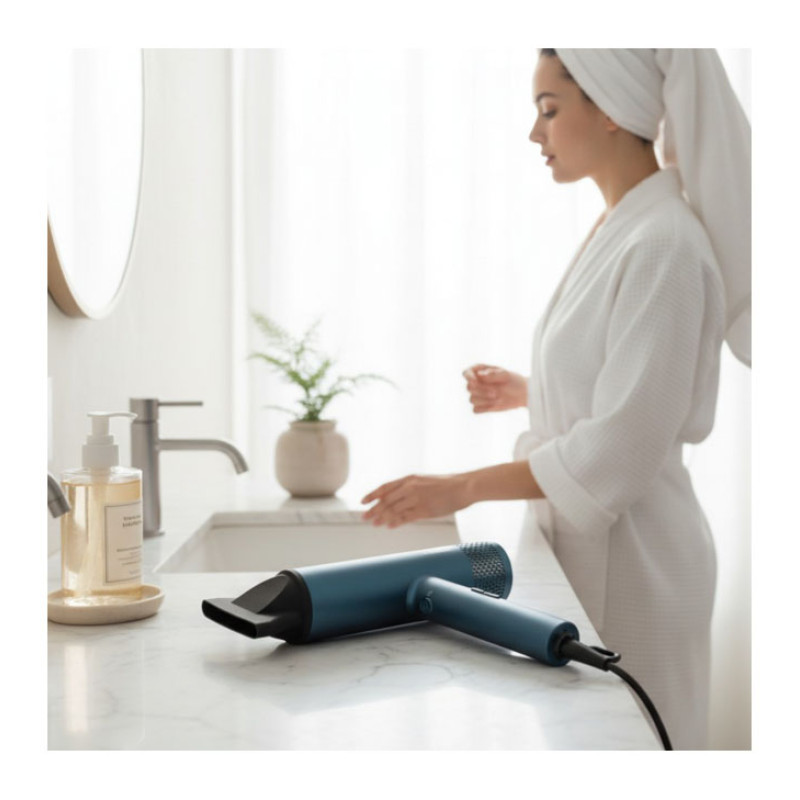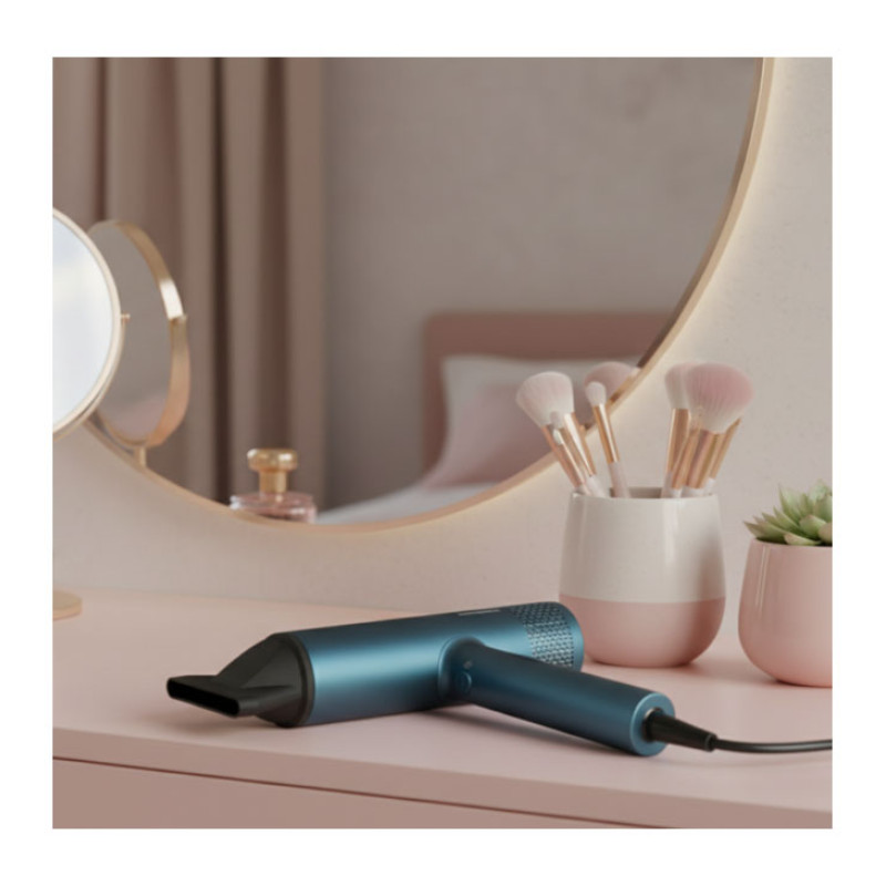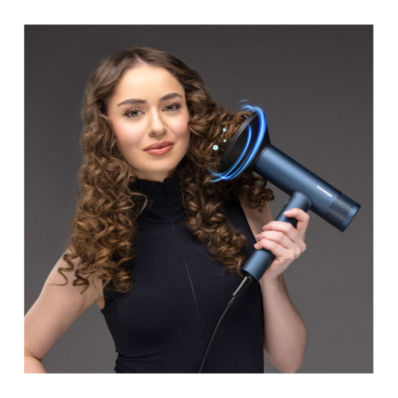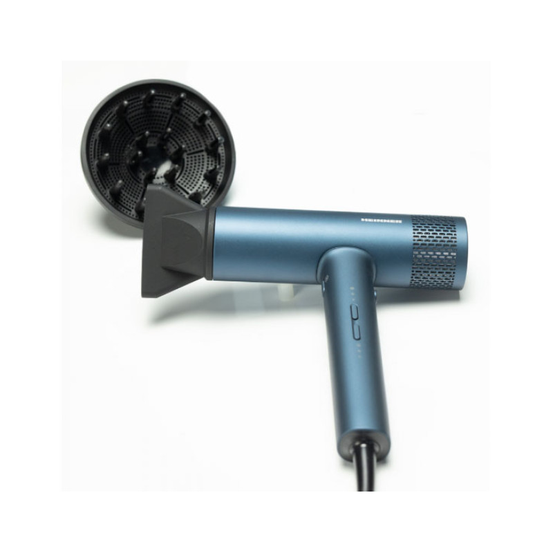 Heinner HHD-Y18BLDC-BL hair dryer with a powerful 1800 W BLDC motor ensures fast drying and precise styling. Negative ion technology helps reduce frizz and enhance shine, while magnetic accessories provide convenient use.