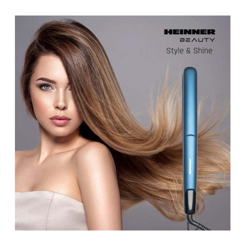 Heinner HHS-Y200-BL hair straightener with ceramic-coated plates ensures smooth and even styling. Fast heating and precise temperature control make it ideal for daily use.