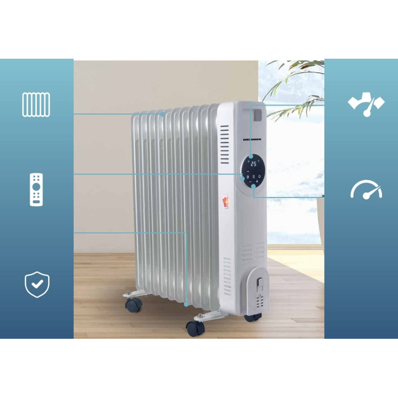 Oil-Filled Radiator Heinner HOH-Y11WB, 11 Elements 125 x 580 mm, 3 Heat Settings: 1000/1500/2500W, Overheating Protection, Adjustable Thermostat, Power Indicator Light, Wheels for Easy Maneuvering