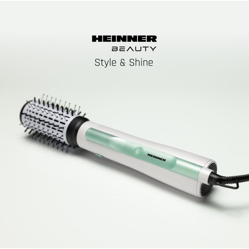Heinner HAB-Y12DC-WH1 hot air brush with a 1200 W DC motor allows quick hair drying and styling. Negative ion technology helps reduce frizz and leaves hair smoother and shinier.