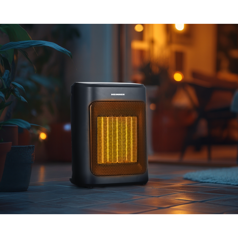 Ceramic radiator Heinner HCH-MD20BK, power: 1200/2000W, LED display, touch control, 24h timer, digital thermostat, PTC heating element, tip-over protection, over-heating protection, color: black.