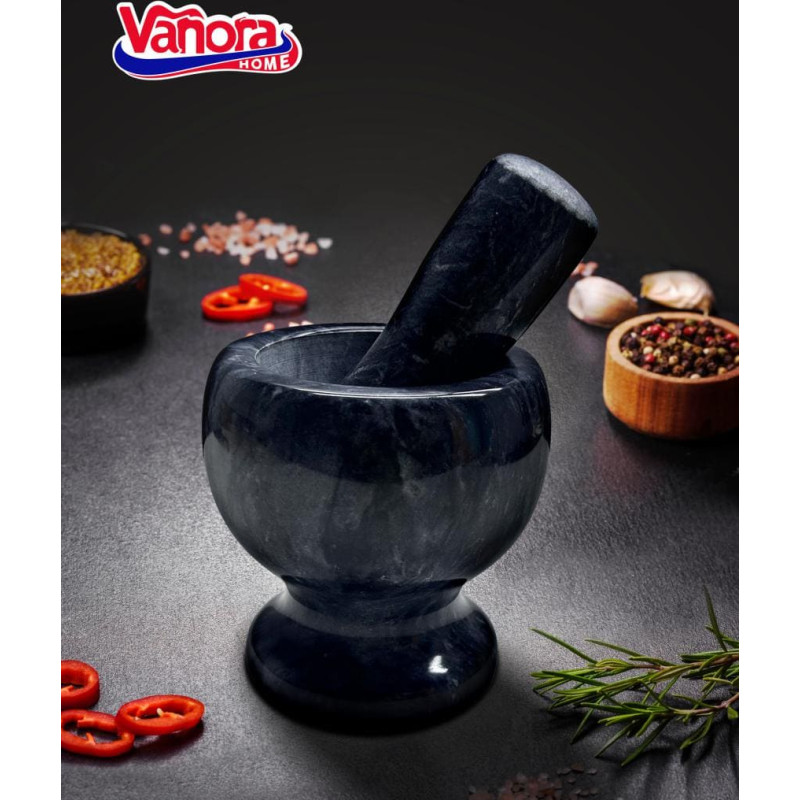 Marble Mortar with Pestle, Ø 9.5 cm, Black, VANORA HOME