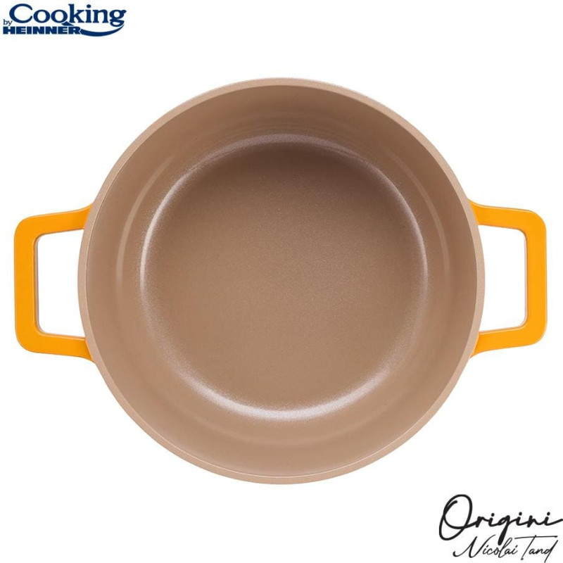 The NICOLAI TAND cast aluminum cookware line was created to finally give you a reliable helper in the kitchen, regardless of what you plan to prepare. The interior surface, coated with grey non-stick ceramic, provides increased resistance to sticking, makes cleaning easier, and allows cooking without fats, offering healthy and tasty options. The cookware efficiently retains heat, keeping food warm and delicious even after cooking, significantly reducing both cooking time and energy consumption. The orange exterior paint is resistant to high temperatures. At the same time, the cookware features a base suitable for all types of hobs, including INDUCTION. High-performance, durable, and functional, this line is essential for any kitchen. Any product from this line (or even the entire line) can be a suitable gift for any occasion, especially as a housewarming gift.