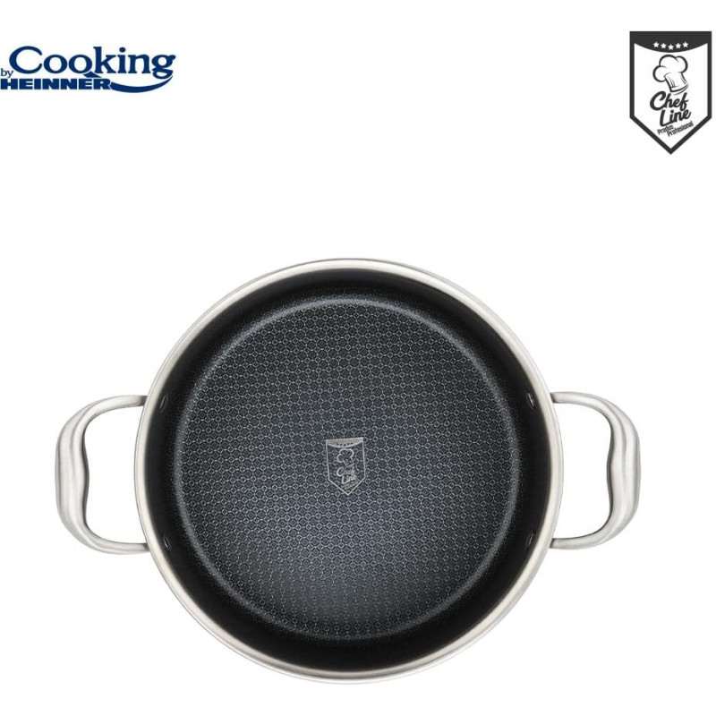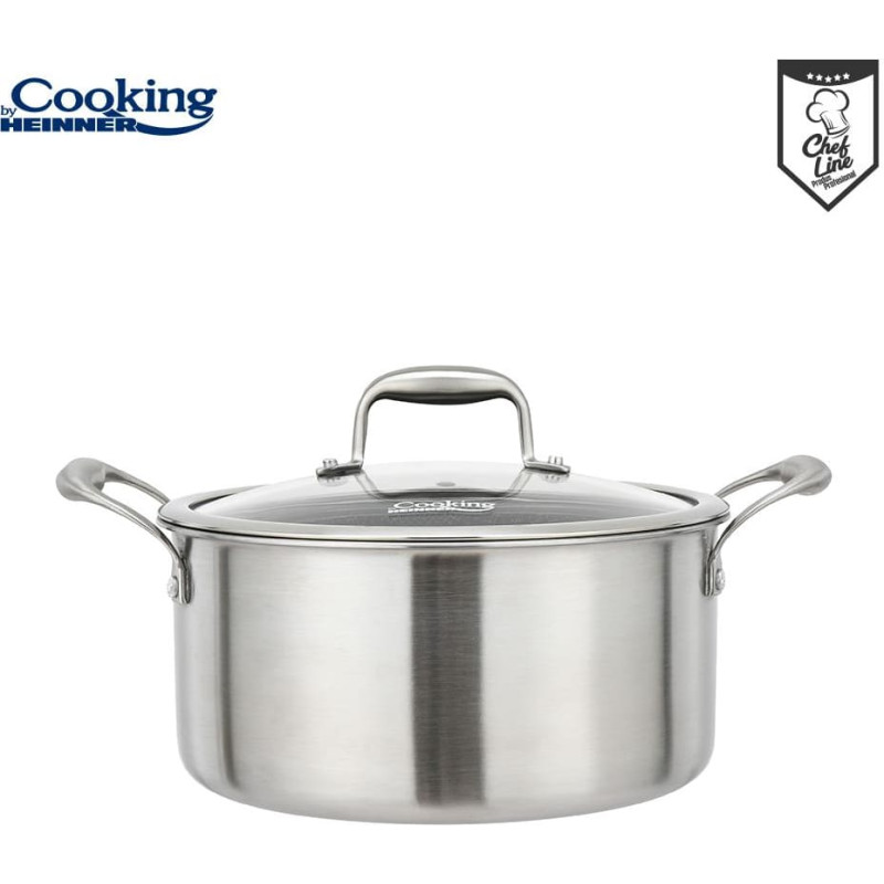 This Titanium3 casserole from Cooking by Heinner is made of high-quality stainless steel with a three-layer wall construction (stainless steel – aluminum – stainless steel), ensuring fast and even heat distribution while reducing energy consumption.