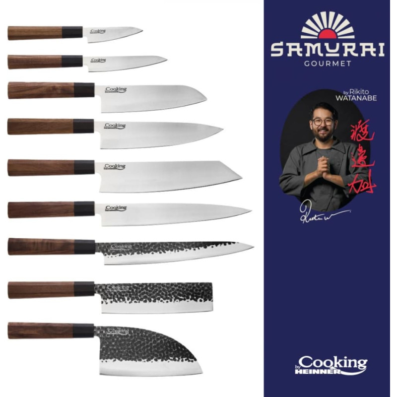 The Samurai Gourmet knife line by Cooking by Heinner is created for cooking enthusiasts who value both performance and elegance. Made from high-quality stainless steel, the blades ensure precise cuts and long-lasting durability, whether slicing, chopping, or portioning.