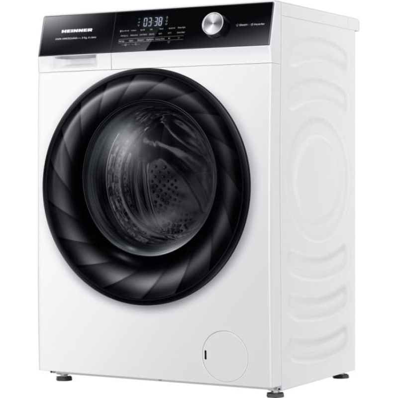 Heinner HWM-HMK9014IVA+++ is a 9 kg washing machine with 1400 RPM spin speed and Inverter motor. It features touch control, digital display, steam programs, automatic load weighing, and advanced washing functions for efficient and customized performance.