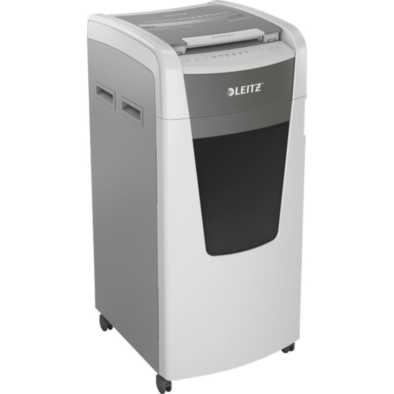 | Fully automatic paper shredder from Leitz with unique clean emptying feature. So intelligent it quietly works on its own, just insert your stack of papers (incl. staples & paper clips), close the lid and get on with your day. Higher security and excellent performance with this anti jam, quiet and top of the class long running (240 min) autofeed shredder. Automatically shred 600 sheets of A4 into security P5 (2x15mm) micro cut pieces in one go into the large 110L bin. Simple operation using touch controls. | ||||||||||||||||||||||||||||||||||||||||||||||||||||||||||||