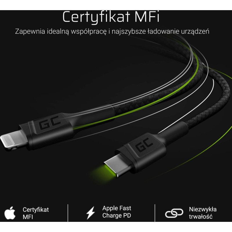 Green Cell USB cable Green Cell USB-C - Lightning 1 m Black (KABGC07)