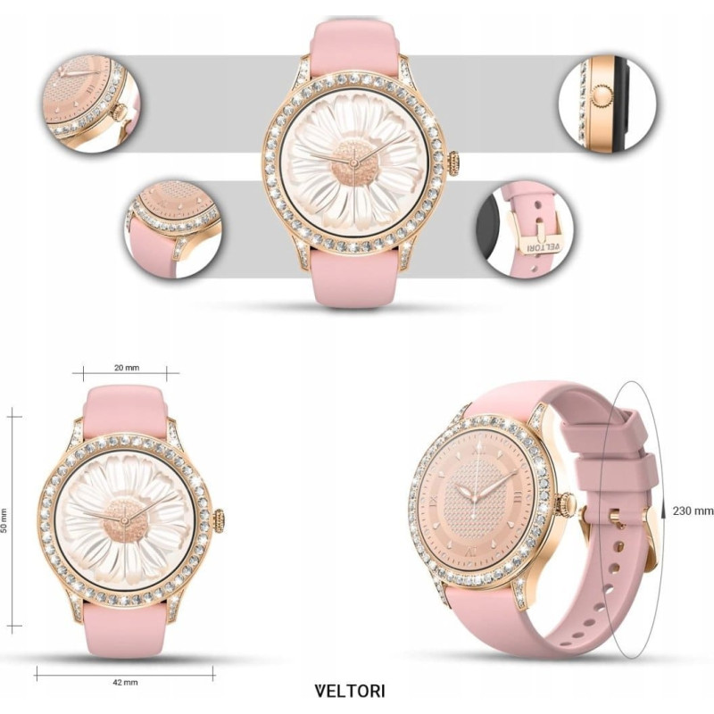 Giewont Smartwatch Damski Veltori VT360-1 Różowy Pasek Silikonowy