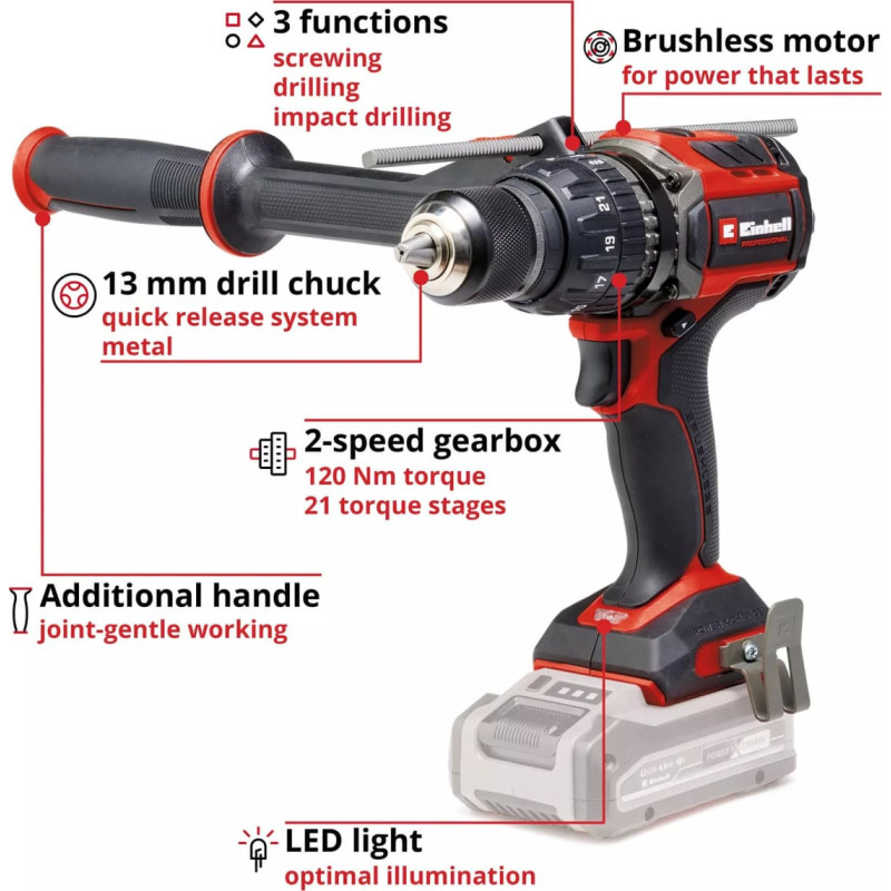 Einhell Professional Cordless Impact Drill TP-CD 18/120 Li-i BL - Solo, 18 Volt black/red, without battery and charger