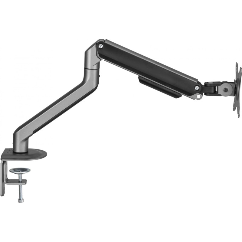 | Desk mounted adjustable monitor arm, space grey Position your screen perfectly Lightweight and tilting design Monitor desk mount with single monitor arm Arm rotates, extends and retracts, tilts to change reading angles, and allows to rotate display from landscape-to-portrait mode, etc Enables easy ergonomic positioning for reduced strain Works with almost any LCD monitor (max. 32") Durable adjustable gas-springs suitable for monitors of 2 - 9 kg Strong desk clamp or grommet for easy and secure fixation on your desk Built-in cable management for an organized and neat workspace VESA compatible (100 x 100 mm and 75 x 75 mm) Manufacturer Website: https://gembird.be/item.aspx?id=12770 | ||||||||||||||||||||